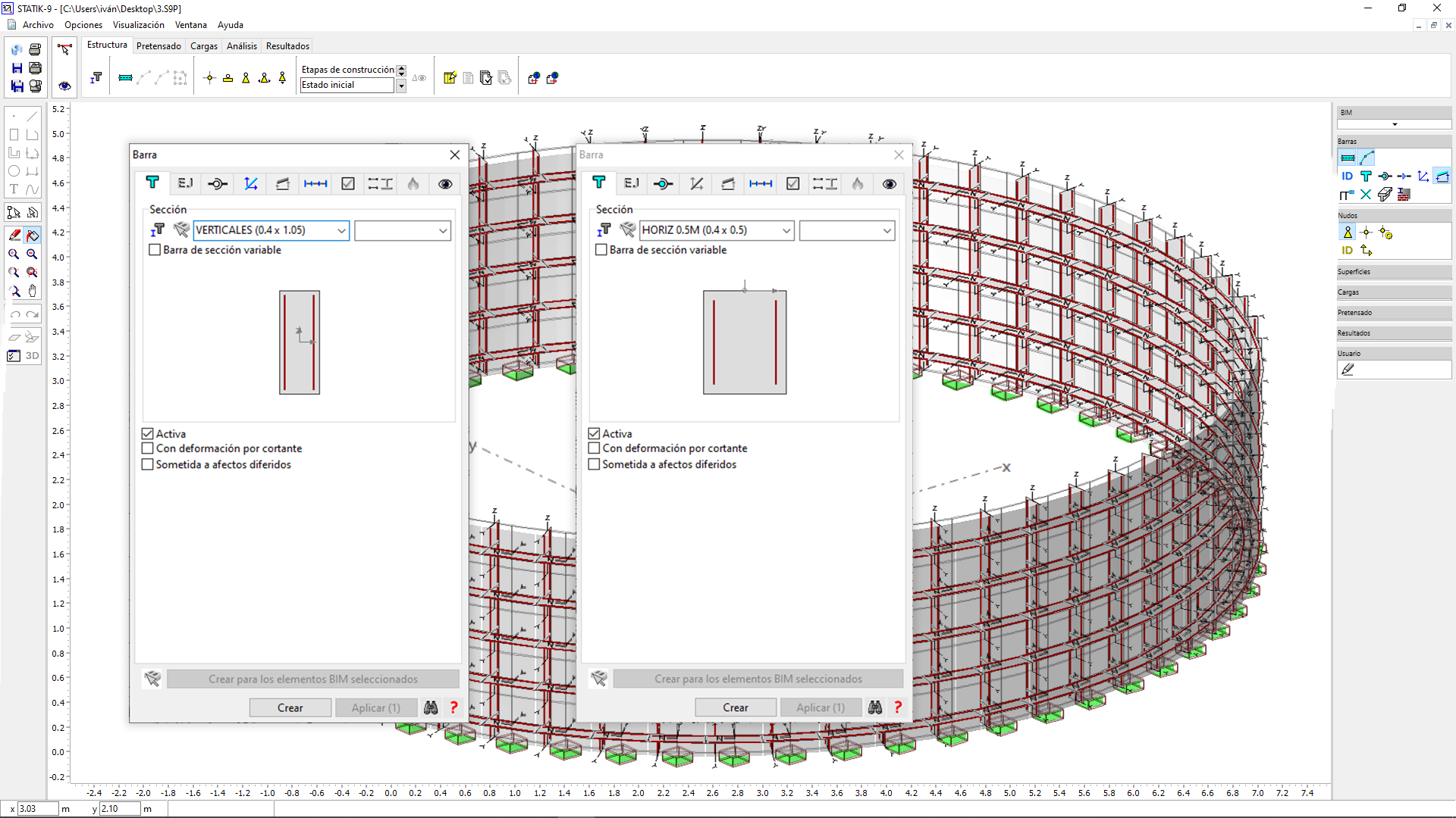 2.29.- MEMBER. MODIFYING THE RIGIDITY OF THE SECTIONS. APPLICATION TO STATIK (II)